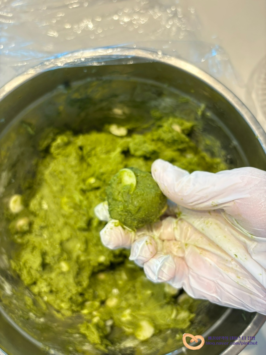 반죽을 적당량 떼어서 동그랗게 모양을 잡아주세요. 굽는 과정에서 쿠키가 퍼지는 것을 감안해서 반죽을 너무 크지 않게 만들어 주시면 좋아요 저는 지름 3~3.5cm 정도 크기로 빚어주었어요