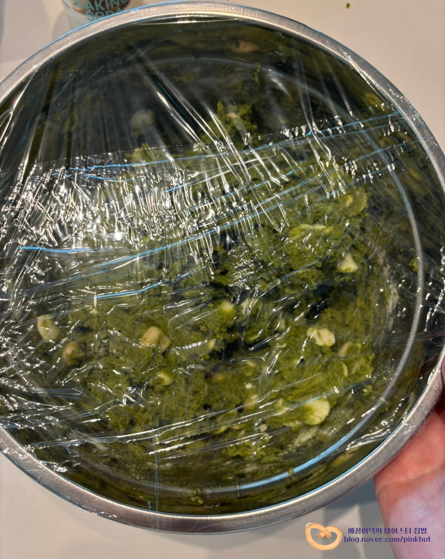 랩 씌워서 냉장실에 30분~1시간 정도 휴지시켜 주세요. 이렇게 냉장고에 차갑게 두면 반죽 모양 잡기가 쉬워져요 풍미도 좋아지고요.