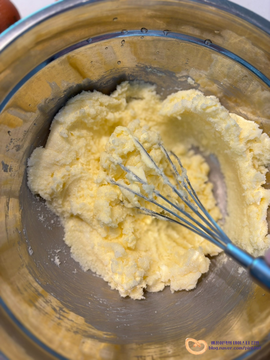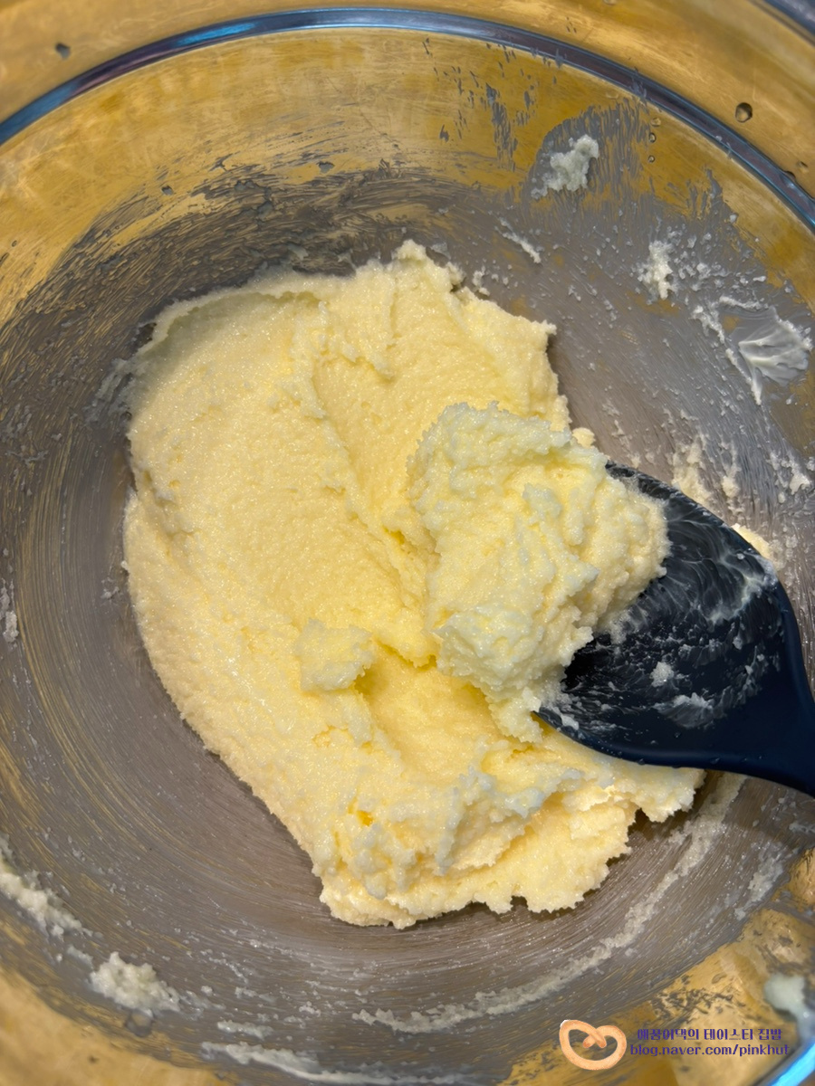 너무 과하게 녹이지 않아도 돼요. 쿠키류의 경우 반죽을 너무 오래 섞어도 식감이 오히려 떨어져요. 설탕이 적당히 서걱거릴 정도로 섞어주시면 됩니다