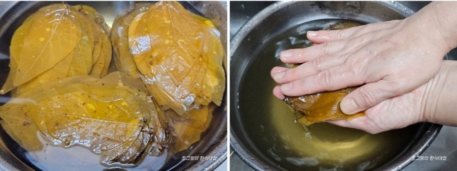 씻고 물기 짤 때에도 흐트리지 말고 묶음째로 들고 살살 씻어주어야 양념 바를 때에도 쉽답니다.