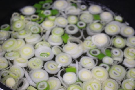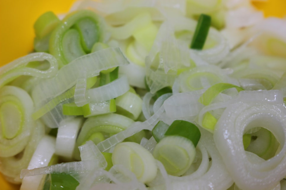 다시마 육수를 뽑는 동안 파를 송송썰어 준비해주세요.
