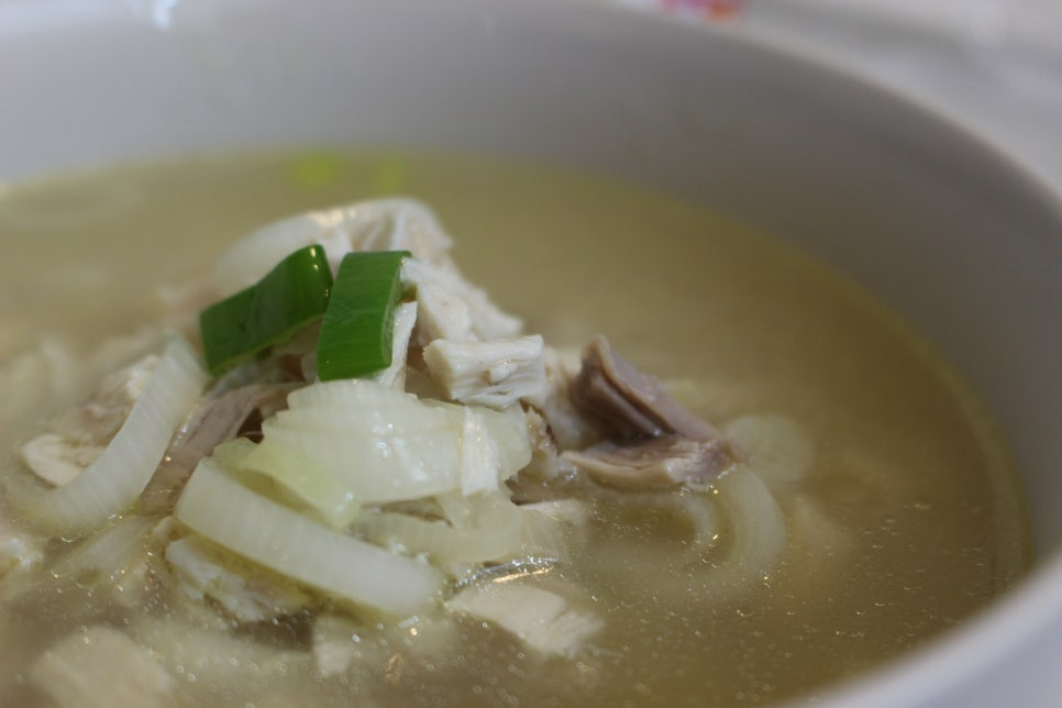 닭을 익혀낸 뒤 건져내어 살만 발라낸 뒤 뼈는 다시 넣고 조금 더 삶아주셔도 좋아요.