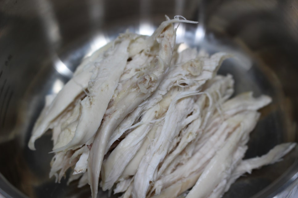 건져낸 닭을 살을 발라 준비해주세요.