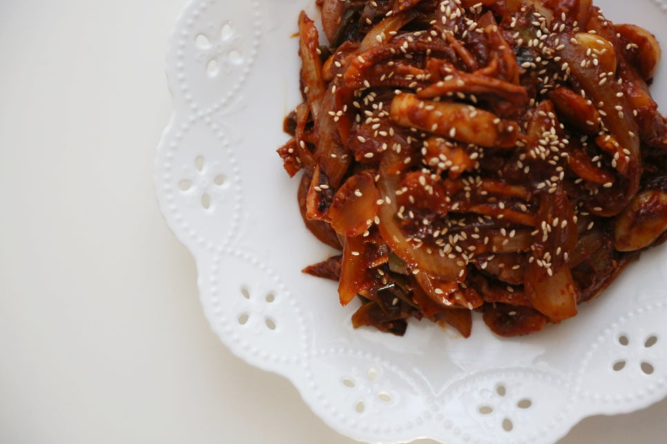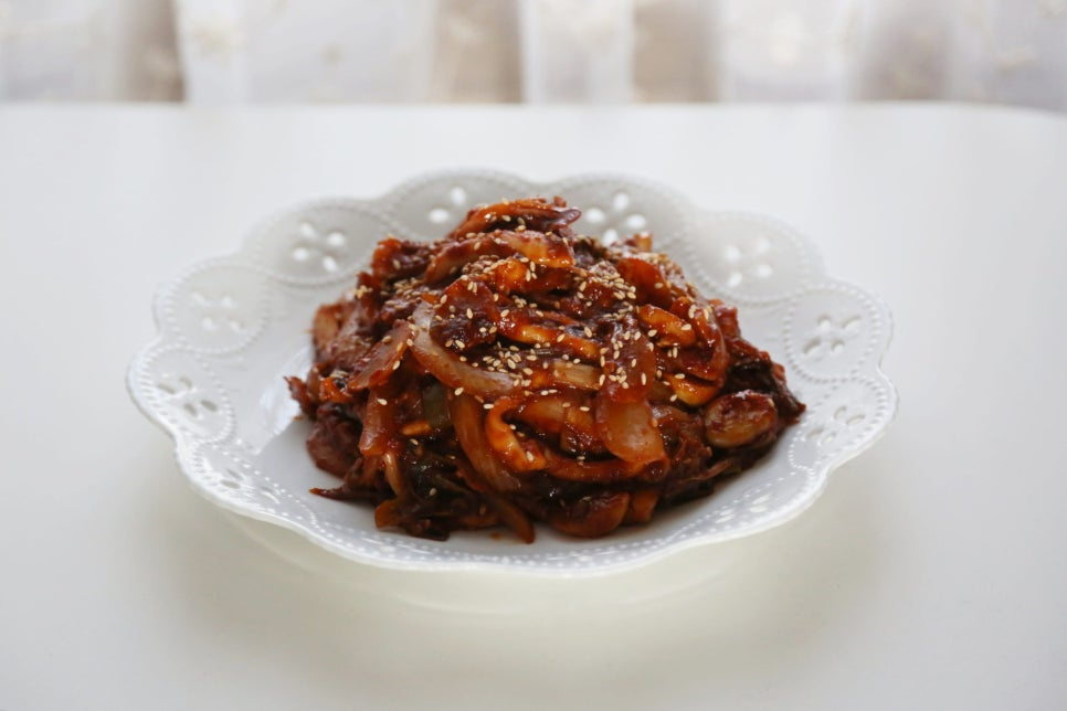 오징어는 너무 익히면 부드럽지않아 마지막에 넣고 양념이 고루 들정도로 익혀준다