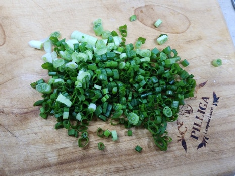 이때 국수 위에 올라갈 부재료인 쪽파를 쫑쫑 다지듯 썰어서 준비해 줍니다