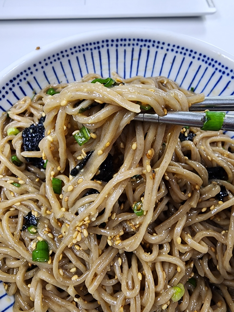 들기름의 고소함과 메밀국수의 쫄깃함 그리고 고명과 양념의 감칠맛이 환상궁합이랍니다