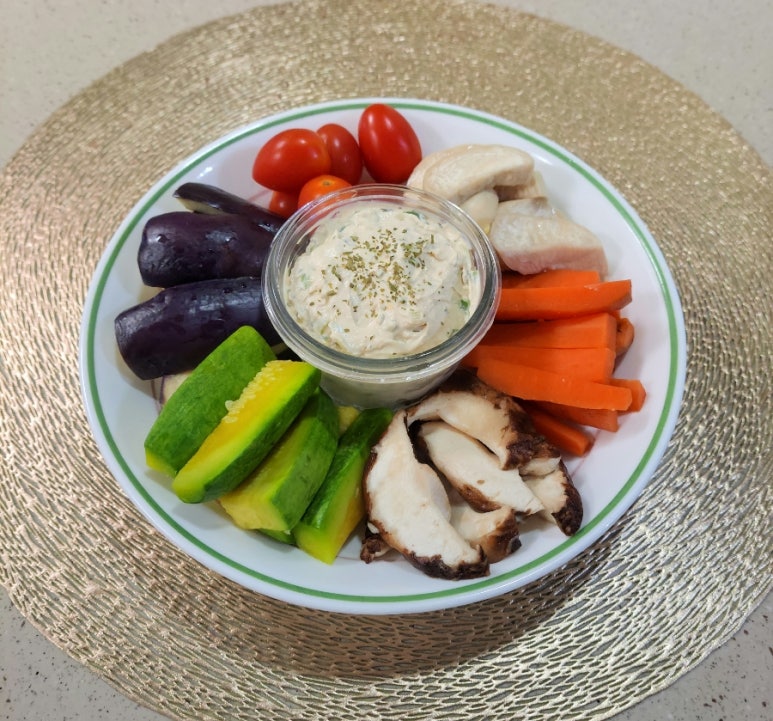 홈메이드 두유 그릭 요커트로 만든 차지키 소스와 함께 먹는~ 야채찜 샐러드를 소개합니다. 생채소 샐러드도 아삭아삭 너무 좋지만, 익힌 채소는 체내 소화 흡수율이 높은 만큼, 채소를 많이 섭취하는 방법으로 추천할 만 합니다. 두유 그릭 요거트. 차지키 소스는~ 느끼함이 별로 없으면서 담백하고 깔끔한 맛이 특징으로 새콤하면서도~ 마늘향, 파슬리향의 풍미가 가득한 ~별미 소스입니다. 감자, 고구마에 발라 먹어도 좋고, 삶은 계란도 1개 정도 추가해서 먹으면 더 맛있고~ 완벽한 한끼 식사 완성입니다.