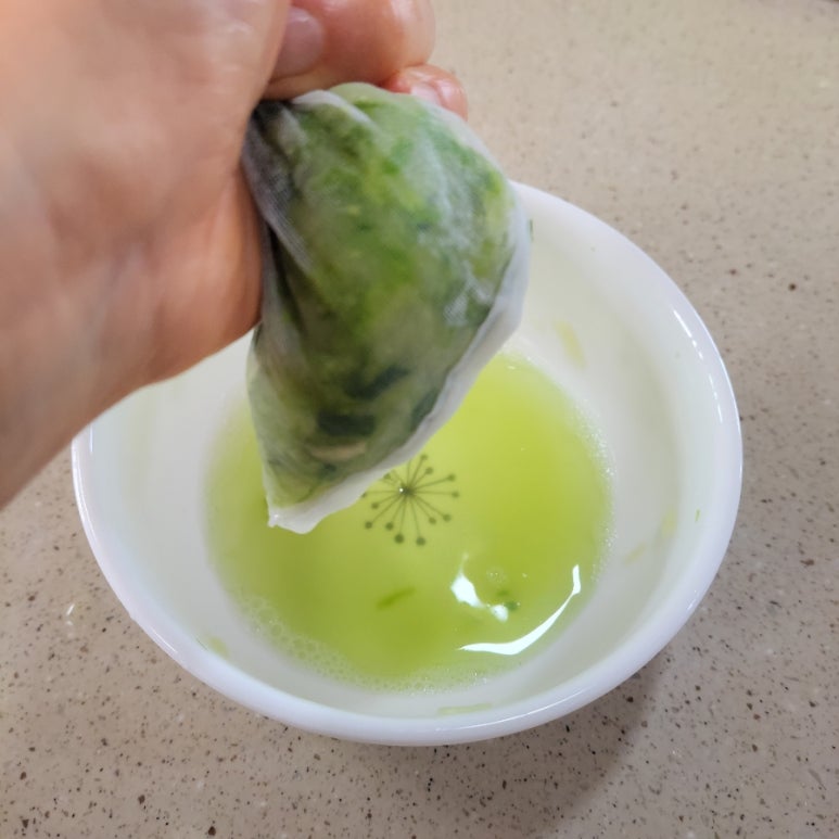 ※면포나 망사 주머니를 이용해서~물기는 되도록 꼭 짜는 게 좋아요.
