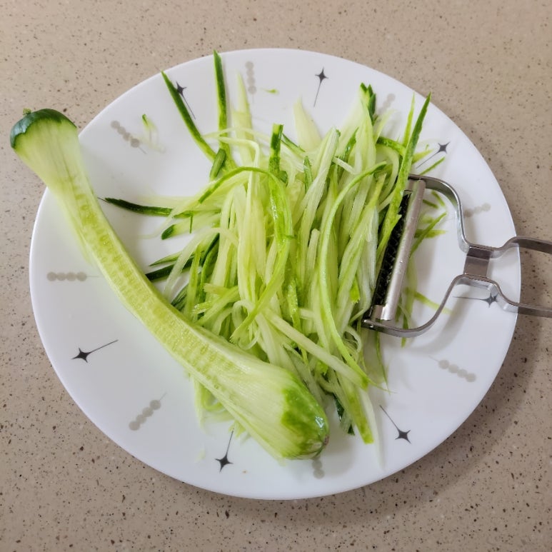 1. 오이 썰기 - 채칼을 이용해서 채썰기.