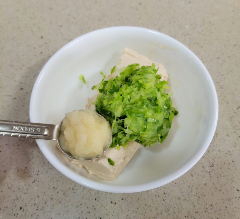 ※ 오도독~씹히는 게 식감이 싫으면 좀 더 잘게 다지면 되는데, 취향껏 적당한 크기로~.