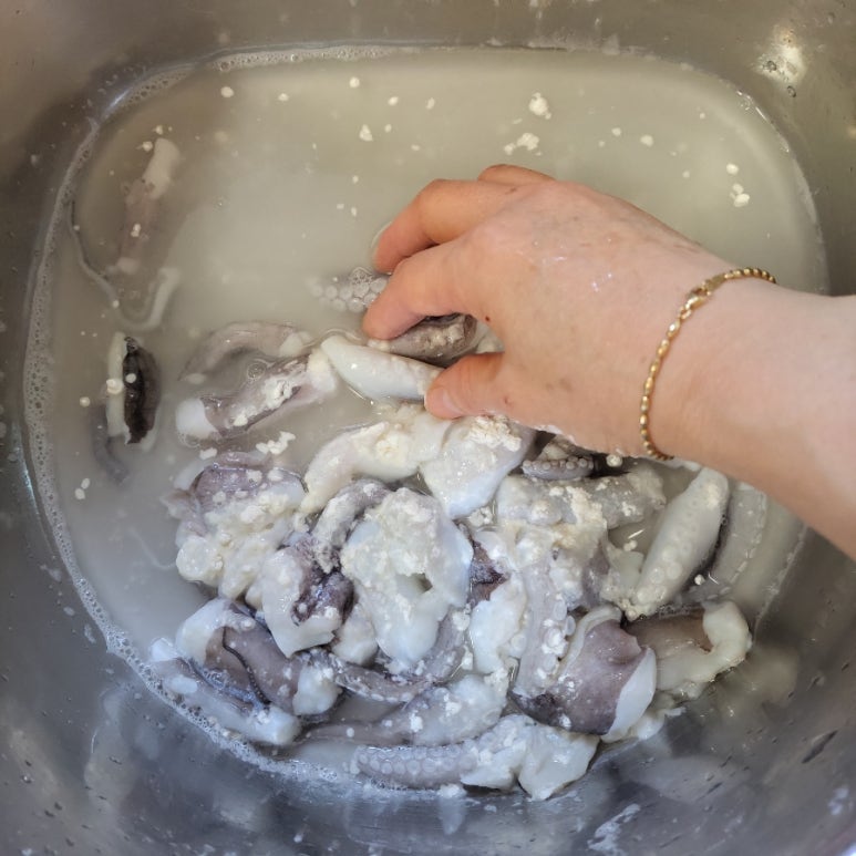 6. 낙지는~ 밀가루 넣고 잘 씻기.