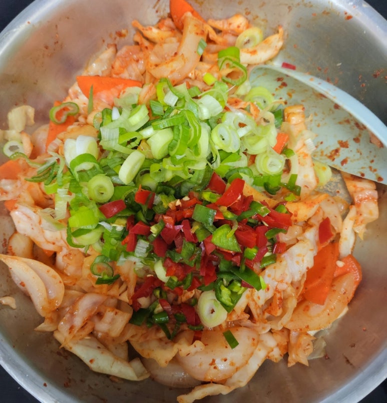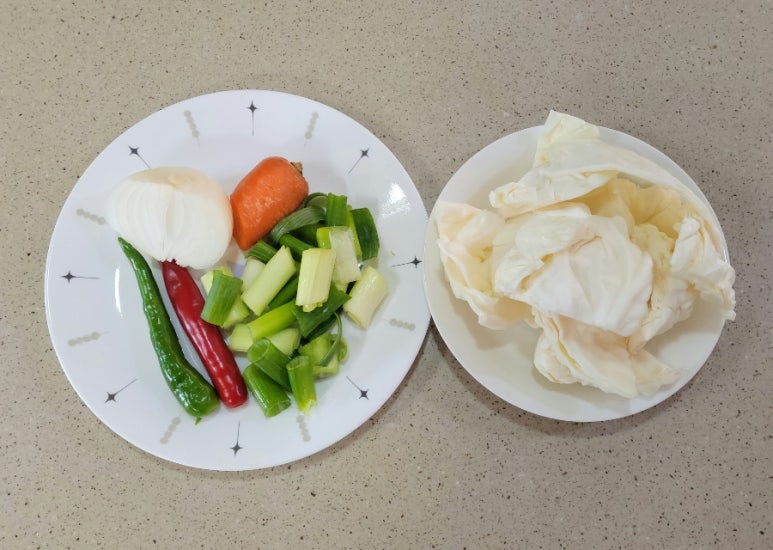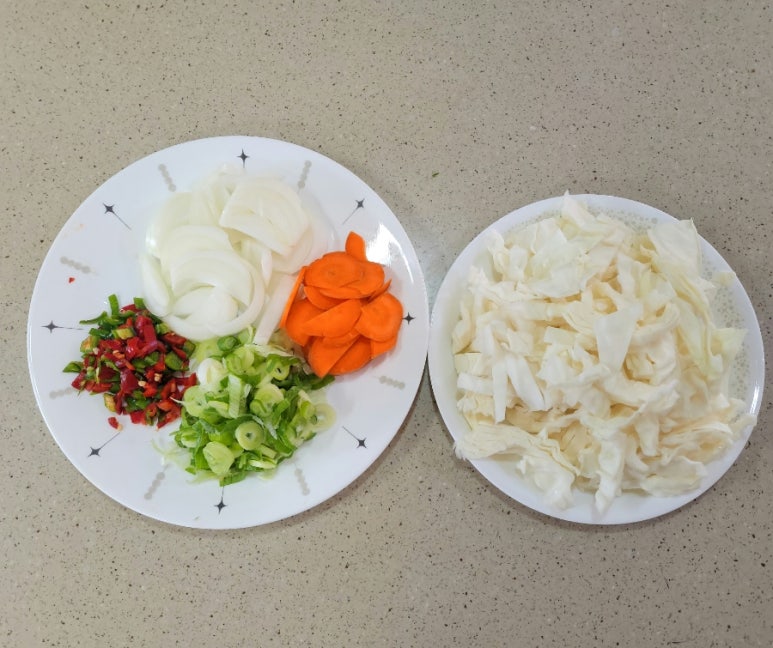 2. 기본 채소 준비 - 양배추, 당근, 대파, 홍고추, 청고추, 양파~.