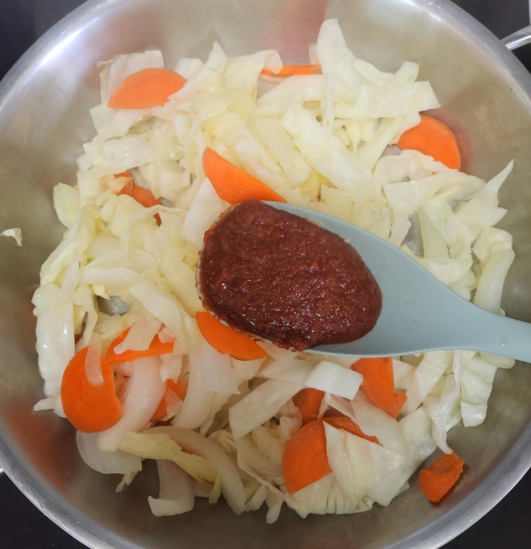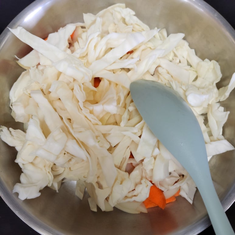 13. 양배추, 물 2T 넣고~잠깐 볶기.