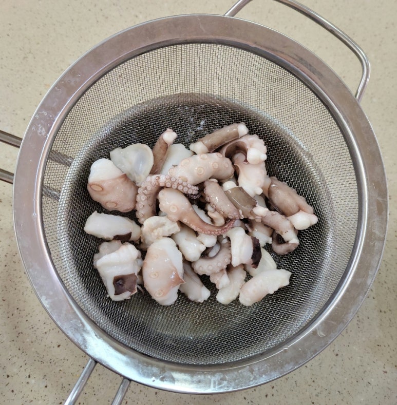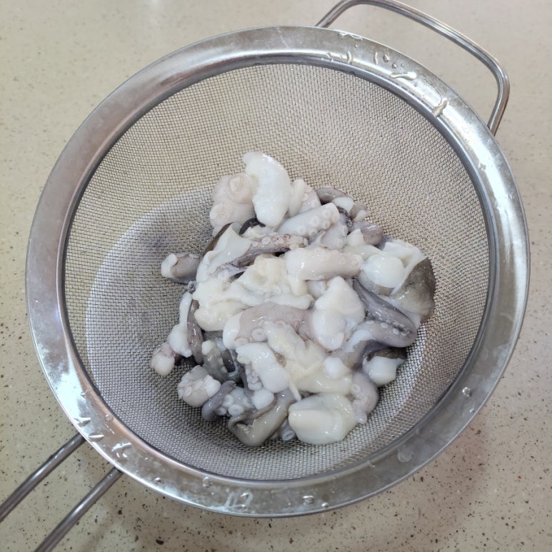 6. 낙지는 체반에 받쳐서 물기 빼기.