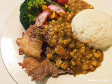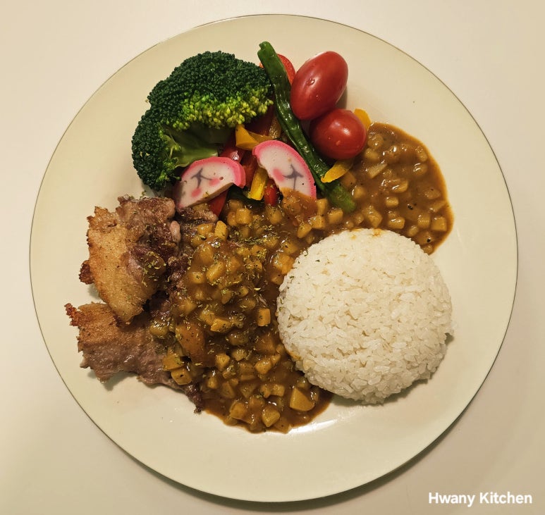 "오늘도 한입마다 커리 향이 가득한 겉바속촉 아빠표 '포크밸리 커리 덮밥'으로 맛있게 촵촵촵~~~~"