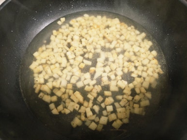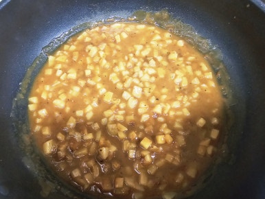 잘 익은 감자에 바몬드 고형 카레 1조각(양을 많이 할땐 2조각)을 넣고 저어가면서 끓여준다