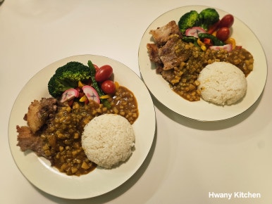 짜쟌~ 드디어 완성된 겉바속촉 포크밸리 커리 덮밥