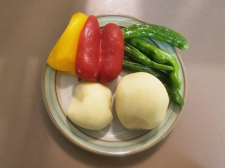 재워놓는 동안 사용한 감자 2개, 파프리카, 꽈리고추를 손질하고 세척해서 준비해준다