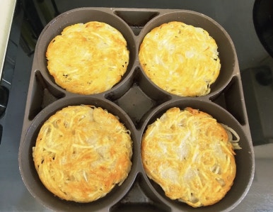 4구 프라이팬도 이용해서 미니 치즈 감자채전도 똑같은 과정을 통해 만들어준다