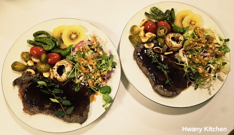 짜쟌~ 드디어 수제 스테이크 소스 & 샐러드 소스로 완성된 등심스테이크