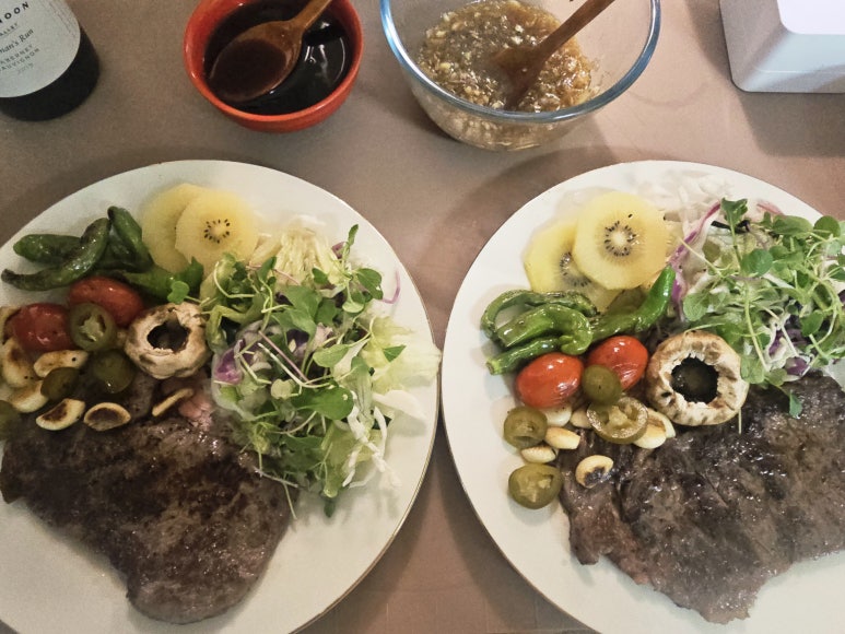 "오늘도 고소한 버터향과 함께하는 아빠표 '등심스테이크'로 맛있게 촵촵촵!~~~~"