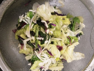 다진 마늘 2숟가락, 다진 양파(1/2개) 2숟가락, 올리브오일 2숟가락, 간장 2숟가락, 레몬즙 1숟가락, 식초 1숟가락, 설탕 2숟가락, 소금 한꼬집, 후추 1/3숟가락을 넣고 잘 섞어서 샐러드용 소스를 만들어준다