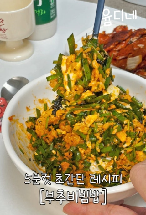 후다닥 완성 가능한 입맛 살아나는 부추비빔밥 레시피!