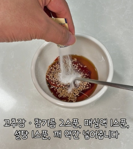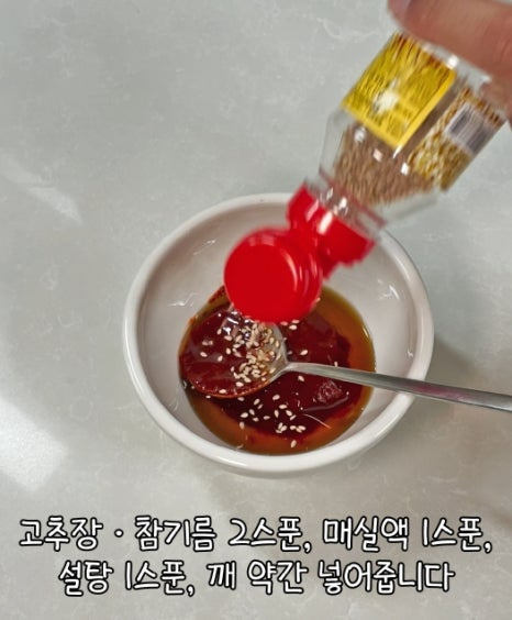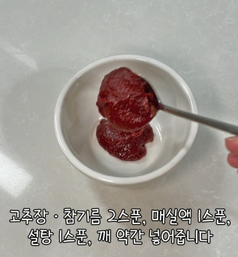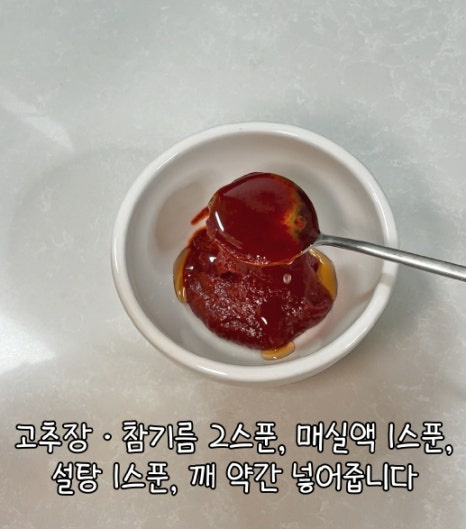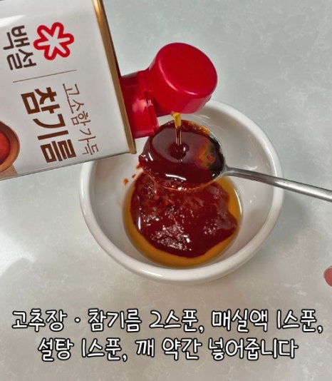 (고추장 2스푼, 참기름 2스푼, 매실액 1스푼, 설탕 1스푼, 깨 약간)