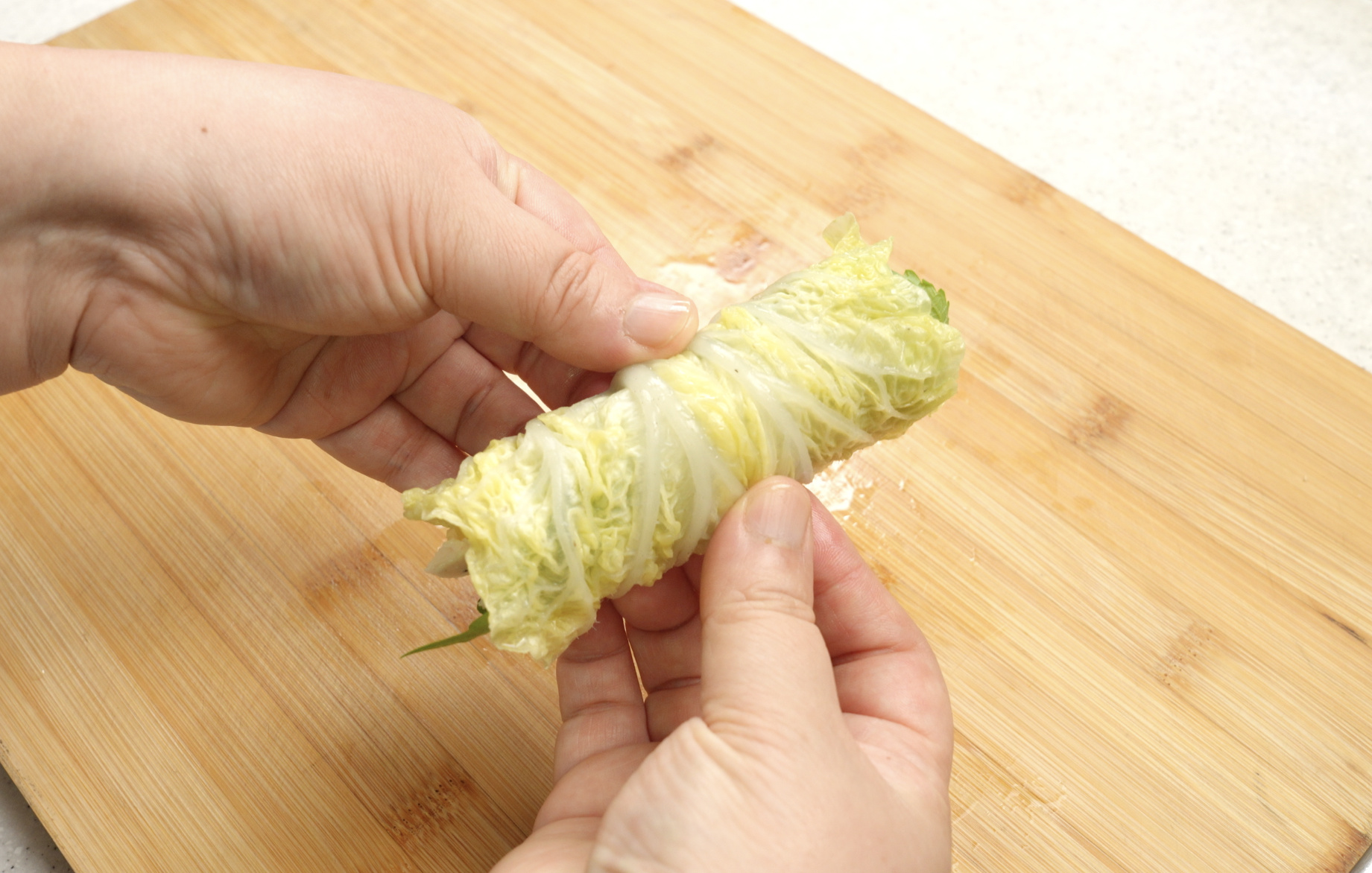 배추는 돌돌 잘 말아지도록 배추잎에 칼집을 살짝 내주세요