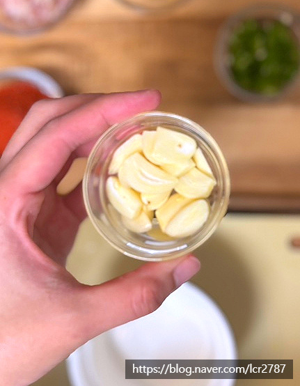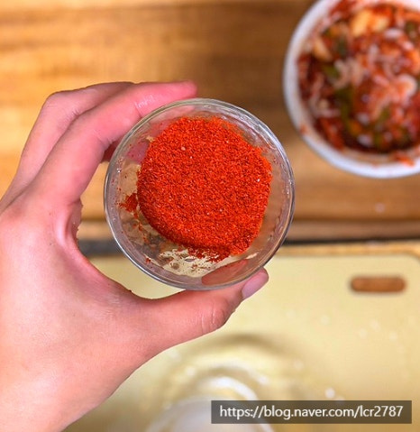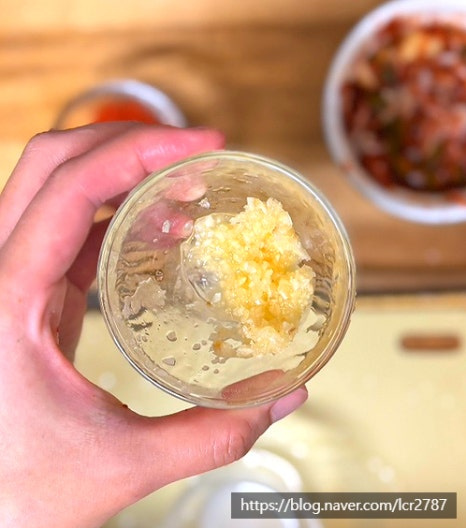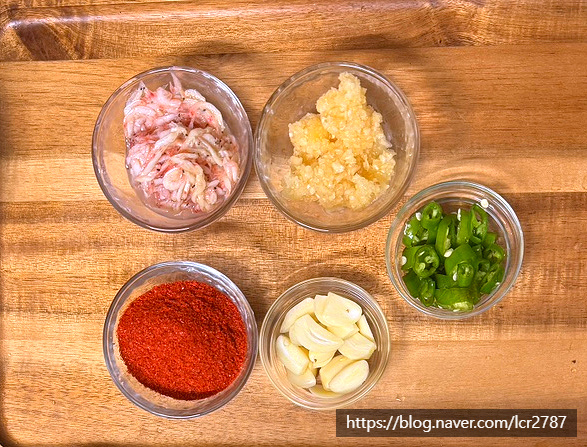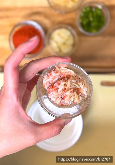 새우젓 무침 만들어주세요.볼에 새우젓 2, 다진 마늘 1, 고춧가루 1, 편마늘 1 다진 청양고추 1, 물 2넣고 잘 섞어주세요.