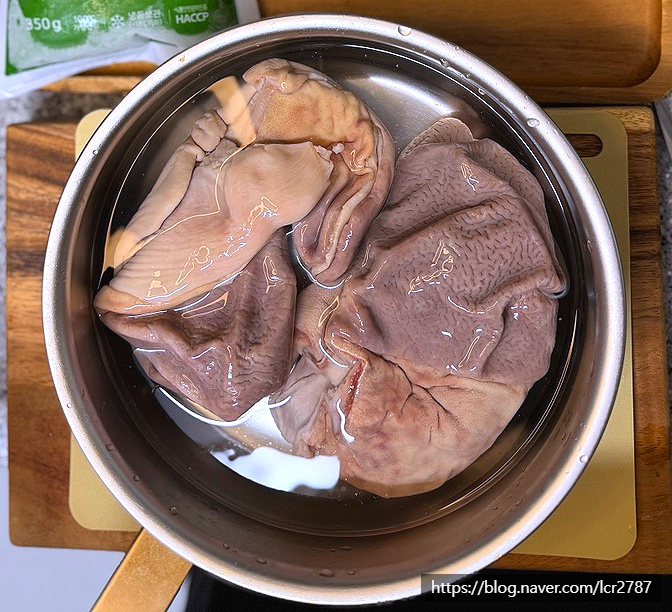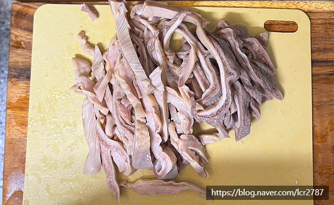 데친 오소리감투는 식힌 뒤 얇게 썰어주세요.