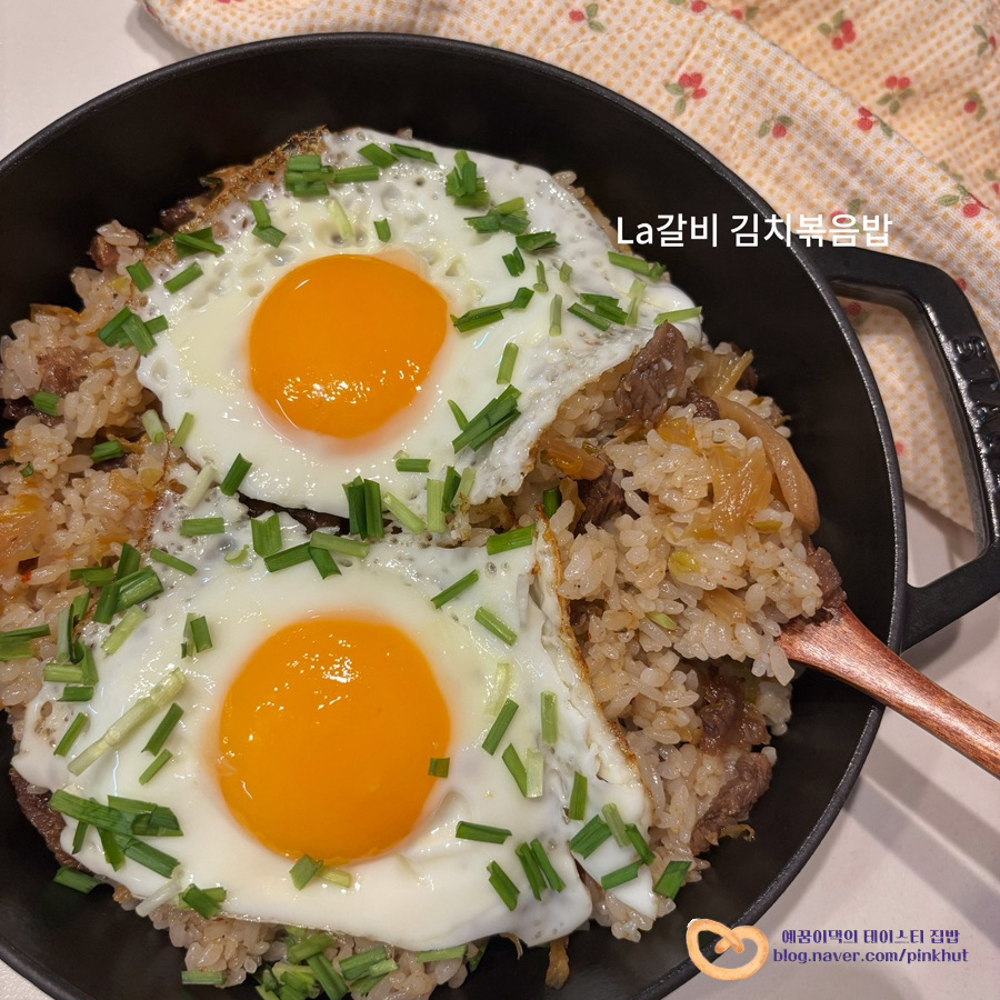 양념 쏙 배인 la갈비가 들어가니 맛 보장이겠죠?ㅎㅎㅎ 김치를 헹궈서 사용하기 때문에 맵지 않고 아이들도 잘 먹을 수 있는 어린이 김치볶음밥 레시피 되겠습니다.