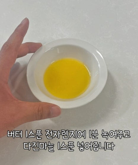 그릇에 버터 1스푼을 담고 전자레인지에 30초만 돌려줍니다.