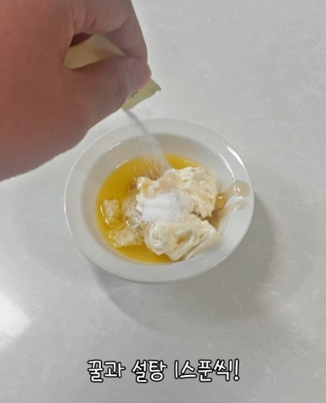다음은 꿀 1스푼, 설탕 1스푼 넣고 잘 섞어줍니다.