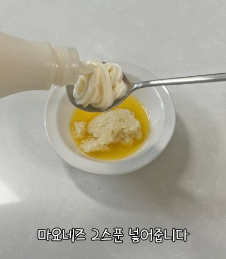 거기에 다진마늘 1스푼, 마요네즈 2스푼 넣어줍니다.