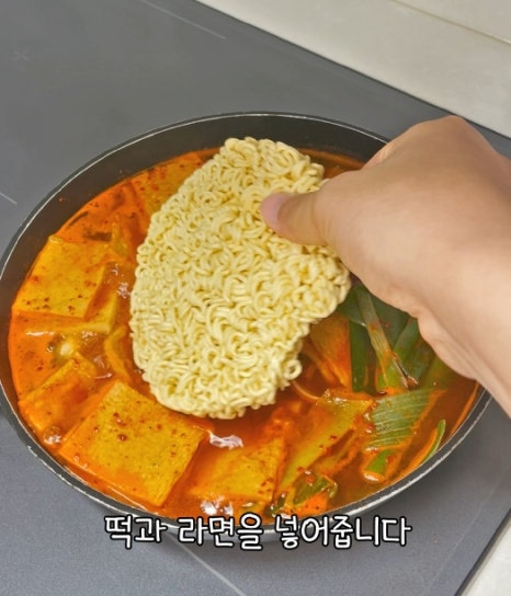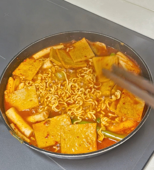 마지막으로 떡과 라면을 넣고, 면이 다 익을 때 까지 팔팔 끓여주면 정말 맛있는 라볶이가 완성됩니다!!