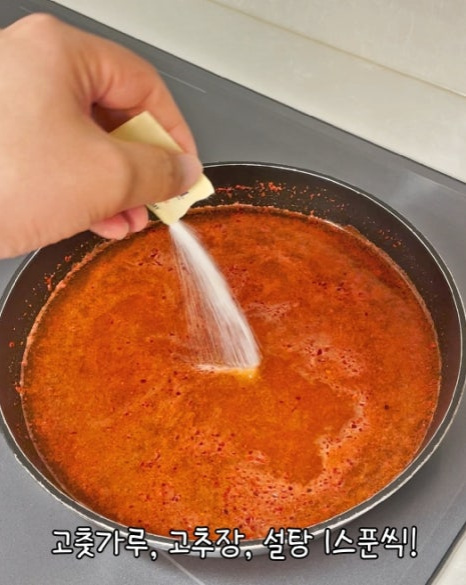 고추장과 설탕도 1스푼 씩 넣고 잘 섞어줍니다.
