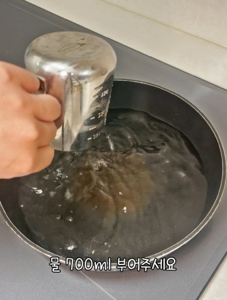 냄비에 물 700ml를 붓고 고춧가루 1스푼을 우선 부어줍니다.