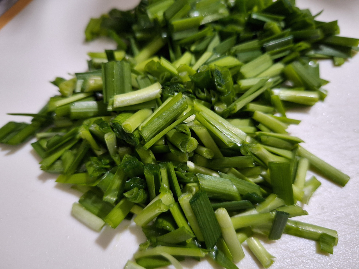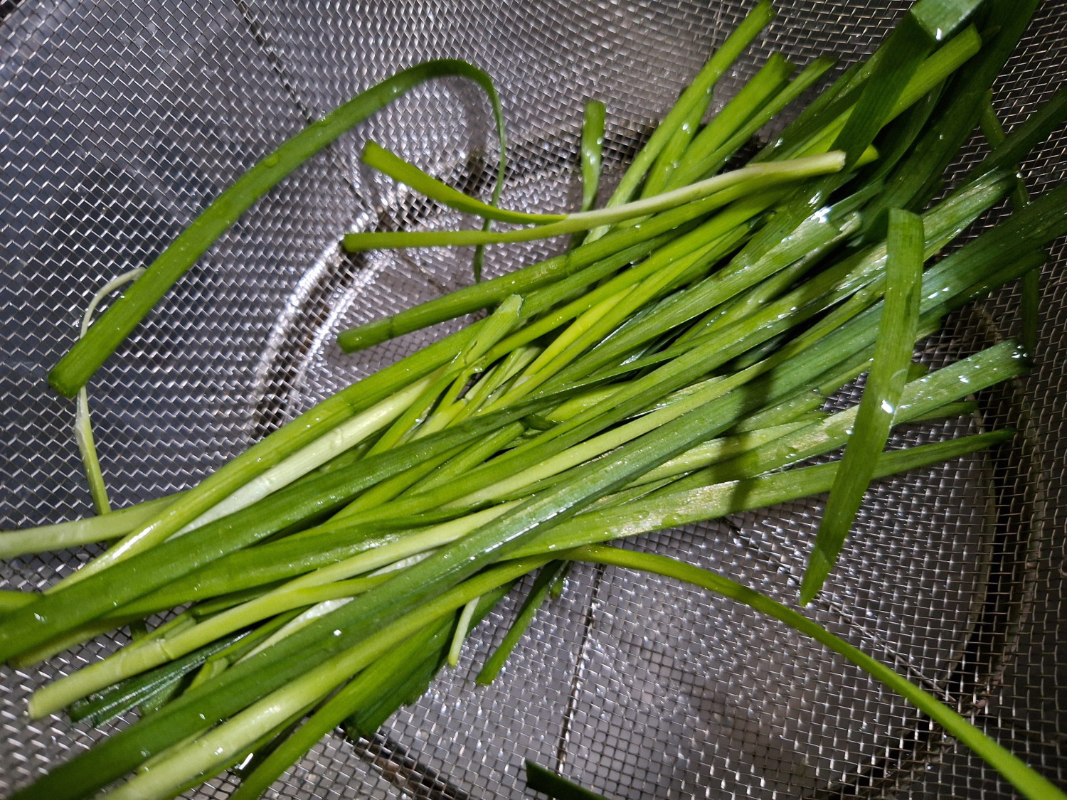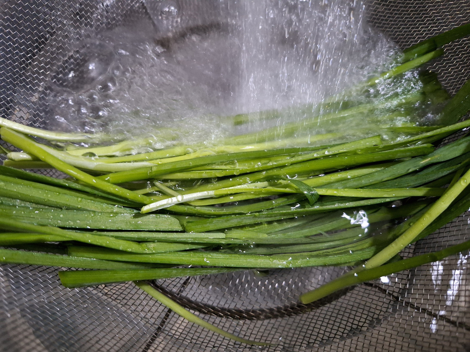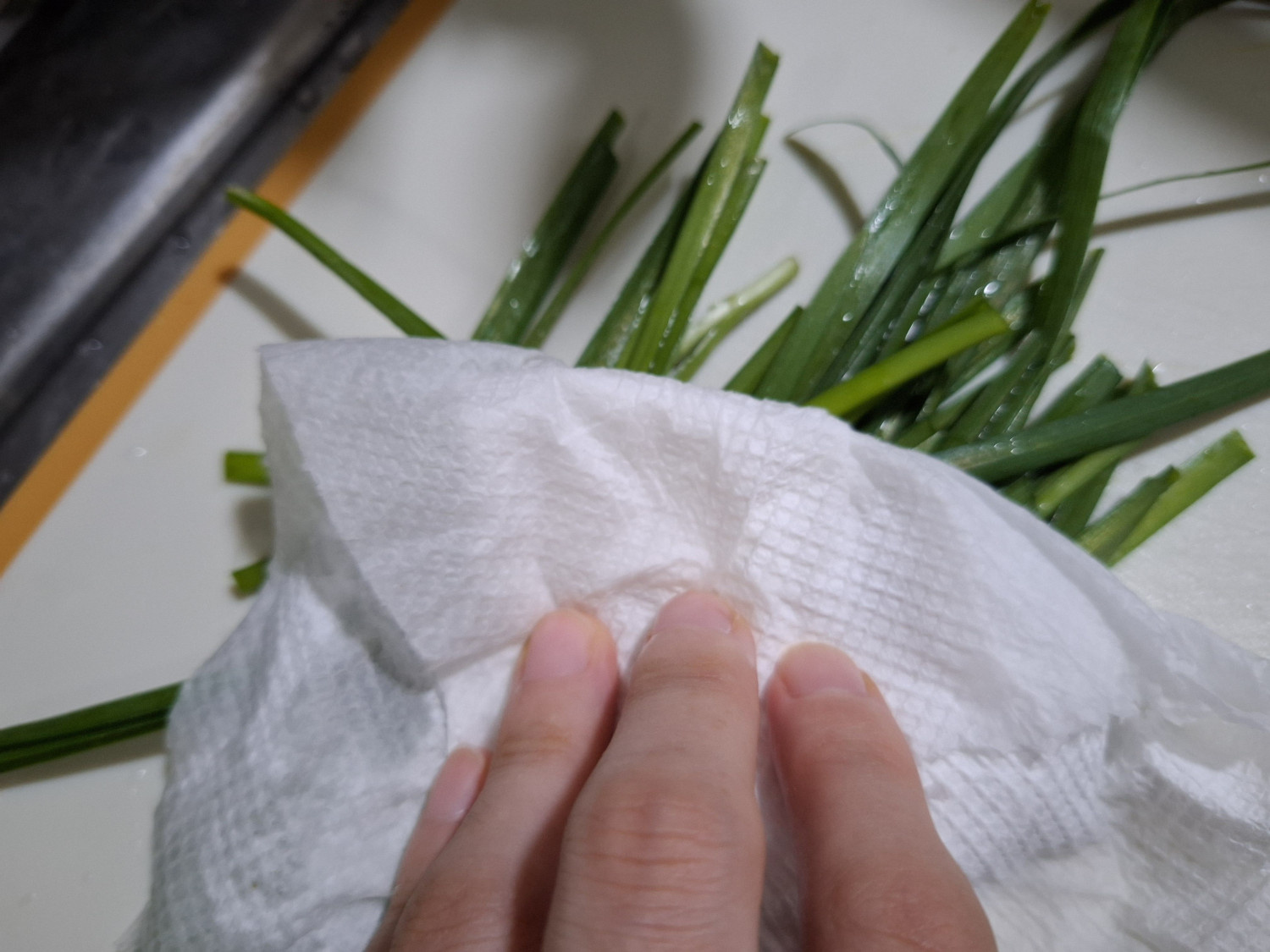 부추는 깨끗하게 씻은 후 물기를 닦아냅니다.
