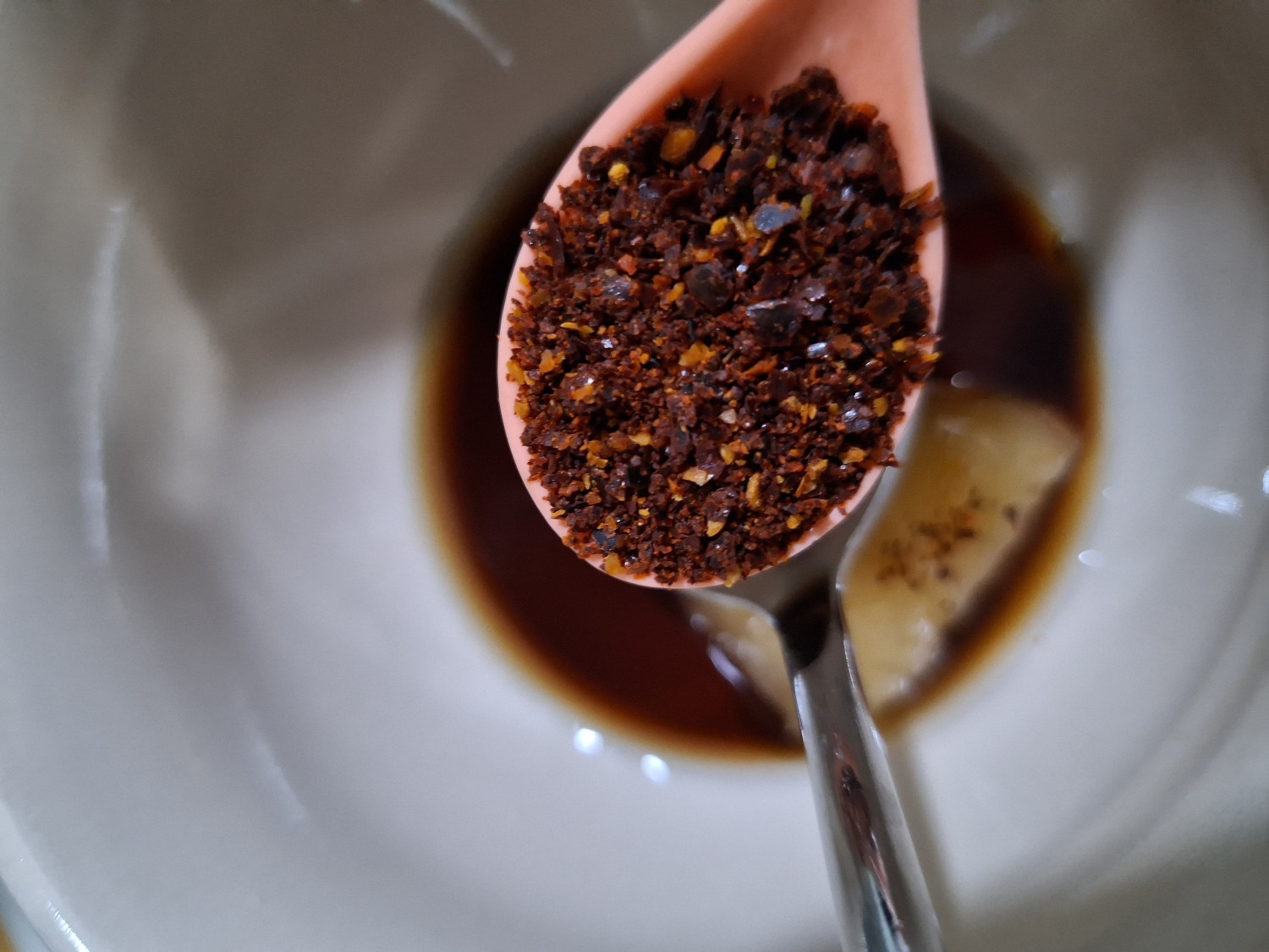 진간장 1숟갈과 고춧가루 1티스푼도 넣고