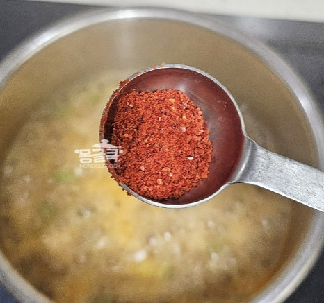 채소가 어느 정도 익으면 청국장과 된장, 다진 마늘, 고춧가루를 넣고 잘 풀어주세요.