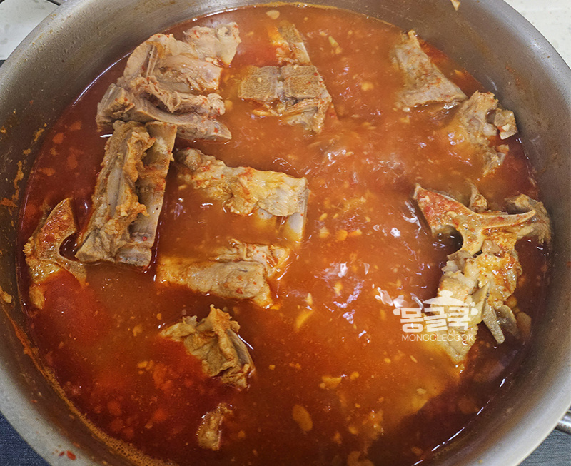 자극적이지 않으면서 깊은 감자탕 국물 맛이 완성돼요.
