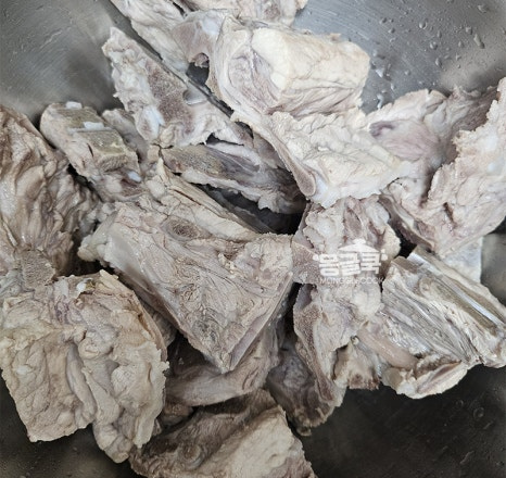 등뼈를 된장, 월계수잎, 맛술(또는 소주)과 함께 한 번 데쳐내면