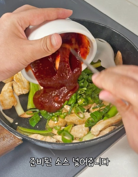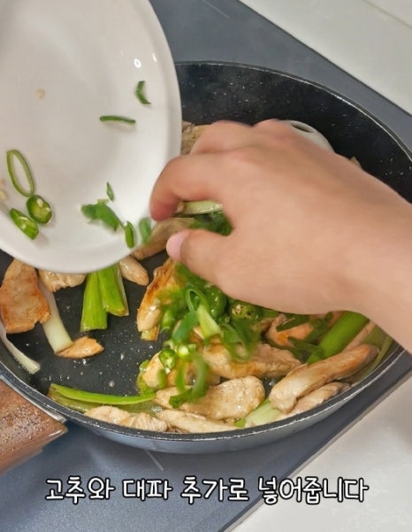 고추와 대파도 넣고 준비해둔 양념장을 넣은 뒤 골고루 버무리듯이 볶아주면..!!