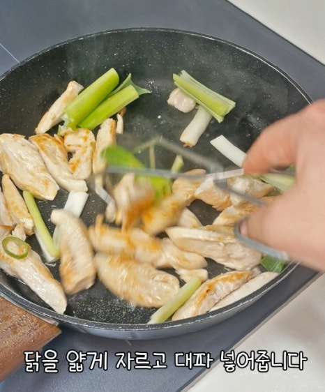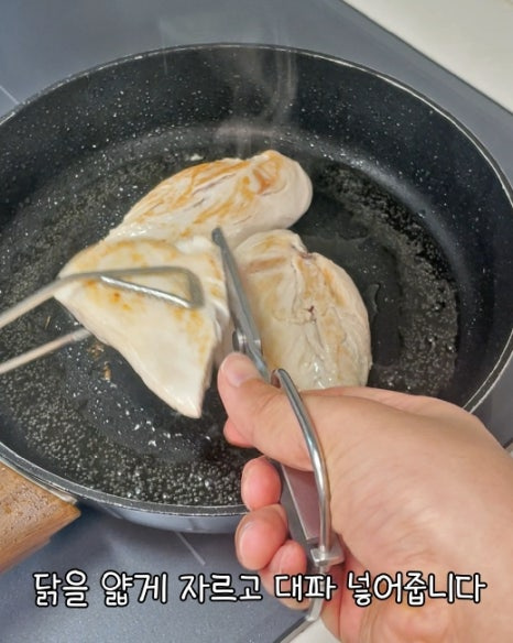 여기서 포인트는 닭을 익히면서 최대한 길쭉길쭉하게 잘라주는건데요!!