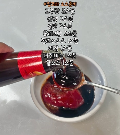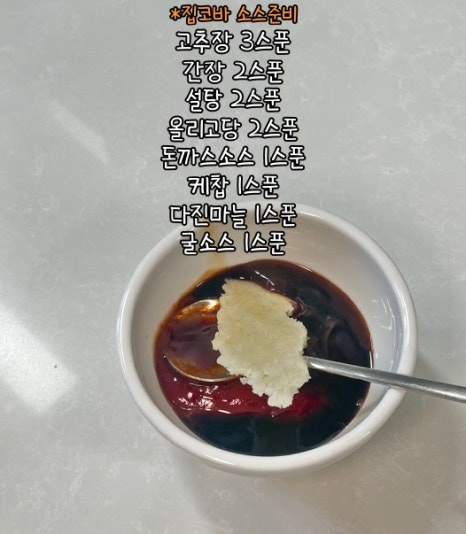굴소스 1스푼과 다진마늘 1스푼을 넣고 잘 섞어줍니다.