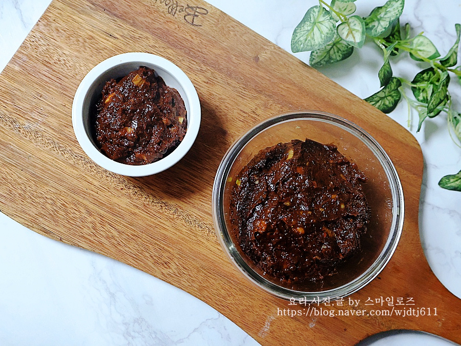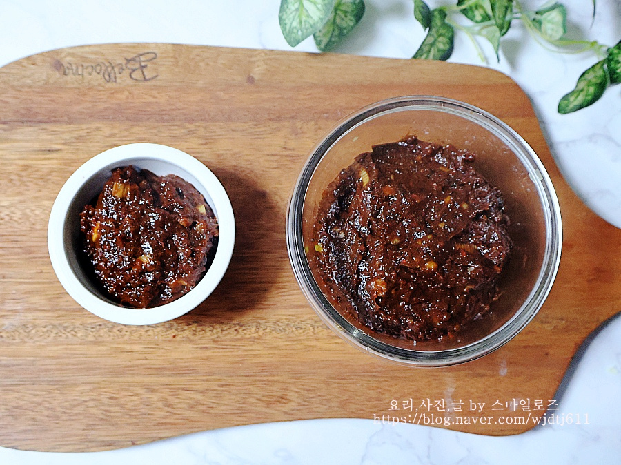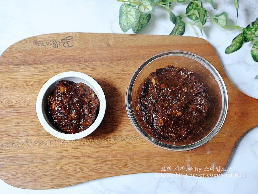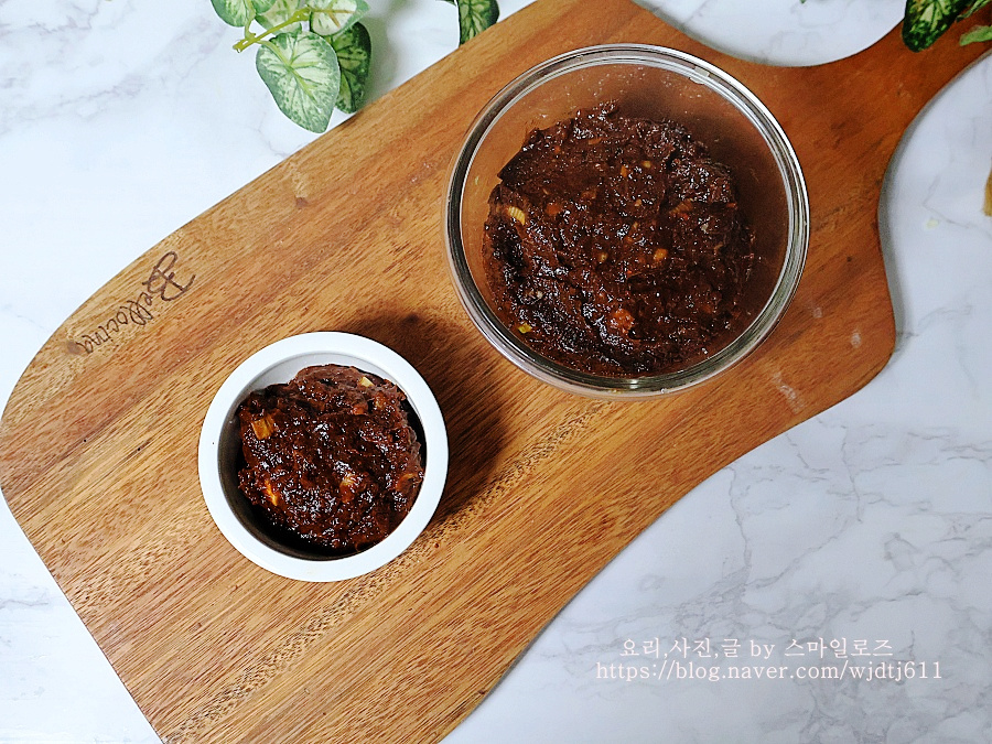 저는 시판용 된장을 사용했는데 집 된장에 시판용을 섞어 만들면