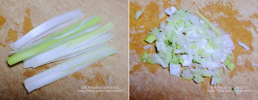 대파는 길게 4등분 한 다음 송송 다져줍니다