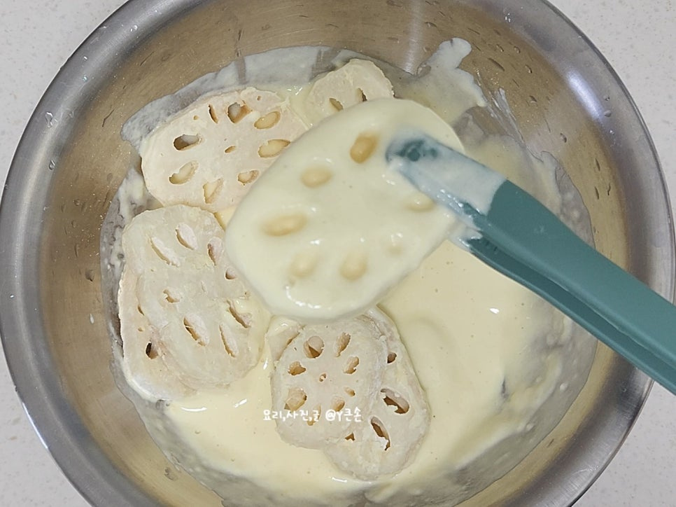 반죽이 되직한 편인데요. 바삭한 튀김 만들기로 오늘 작정했거든요.