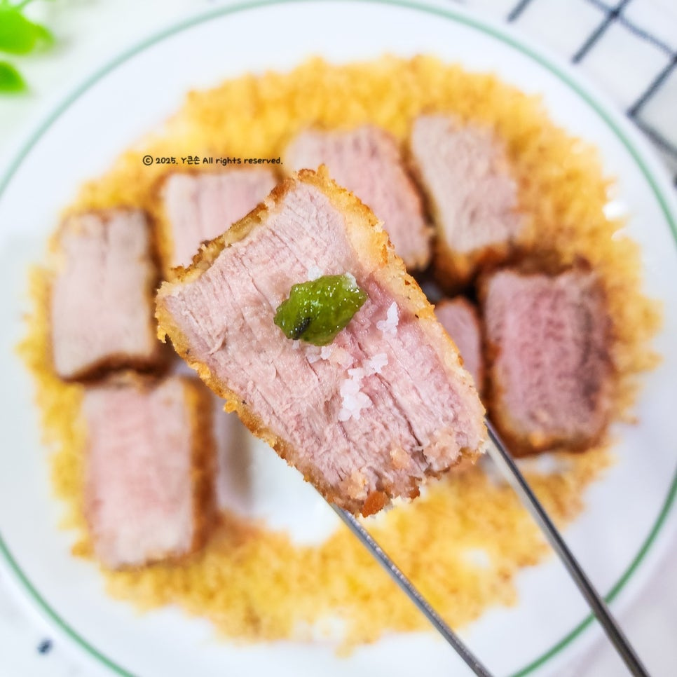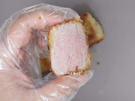 실온에 두면 고기가 덜 질겨지고 히레카츠 특유의 촉촉함이 살아나요.